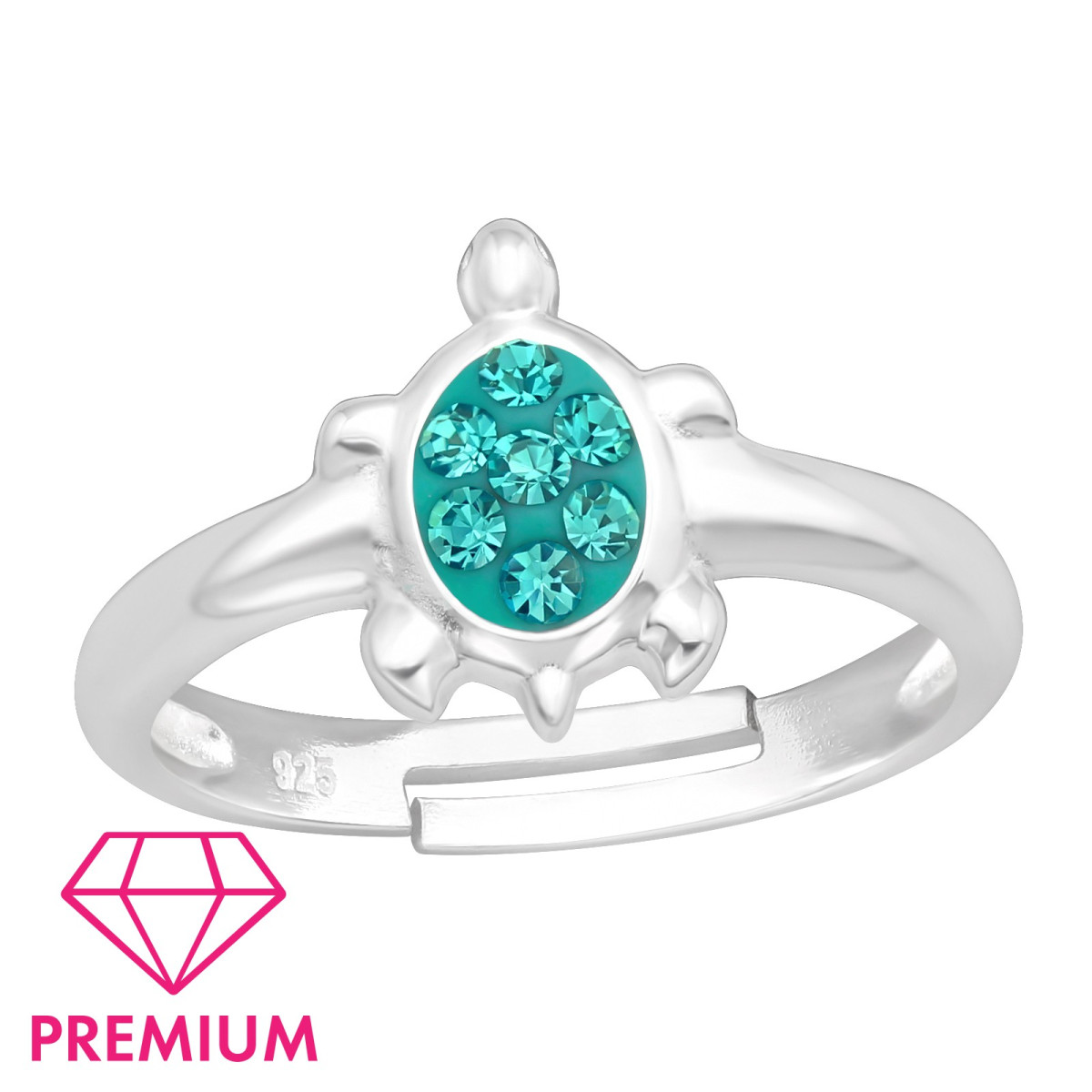 Teknősbéka türkiz kristályokkal gyermek ezüst gyűrű, állítható