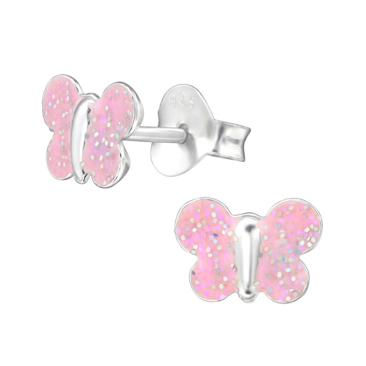 Csillámos pillangó színes stift gyermek fülbevaló, 925 ezüst, 1 pár, epoxy