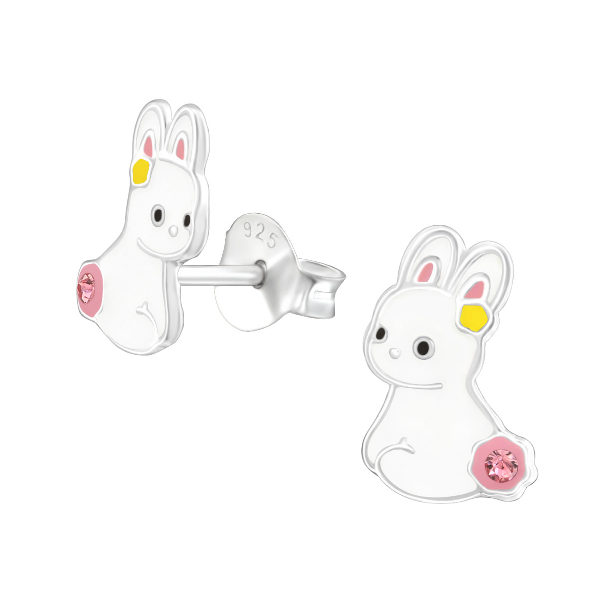 Nyuszis színes stift gyermek fülbevaló, 925 ezüst, 1 pár, epoxy, fekete, sárga, fehér, világos rózsaszín, kristály köves