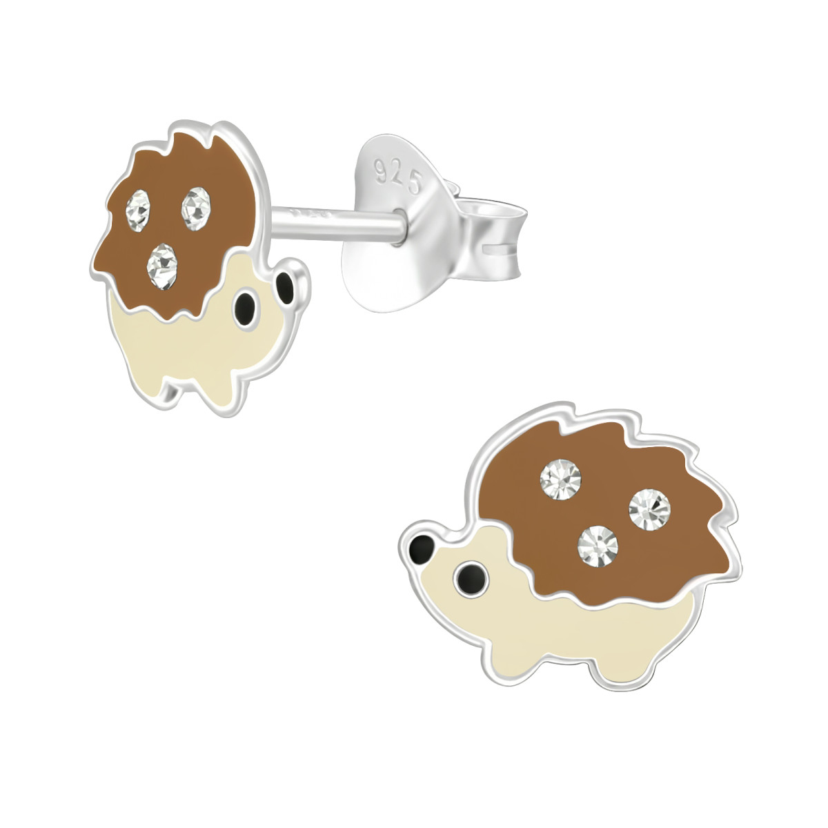 Sün színes stift gyermek fülbevaló, 925 ezüst, 1 pár, epoxy, fekete, krém, barna, kristály köves