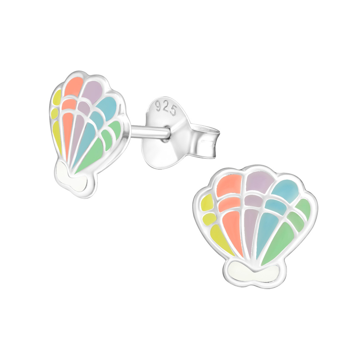 Szivárvány kagylós színes stift gyermek fülbevaló, 925 ezüst, 1 pár, epoxy, világoskék pasztell, világos zöld, világos sárga pasztell, világos rózsaszín , sokszínű, fehér