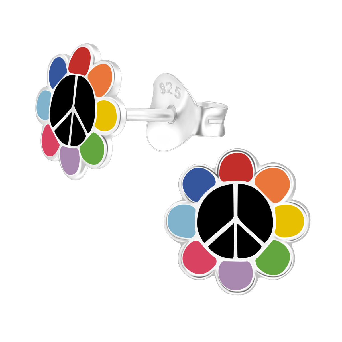 Szivárvány virág peace színes stift gyermek fülbevaló, 925 ezüst, 1 pár, epoxy, dk.blue, narancs, fekete, sárga, zöld, piros, sötét rózsaszín, lila, kék