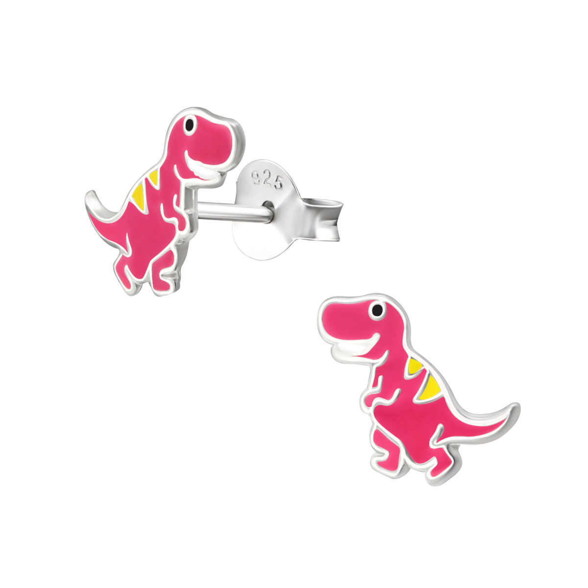 T rex dínó színes stift gyermek fülbevaló, 925 ezüst, 1 pár, epoxy, fekete, sárga, rózsaszín