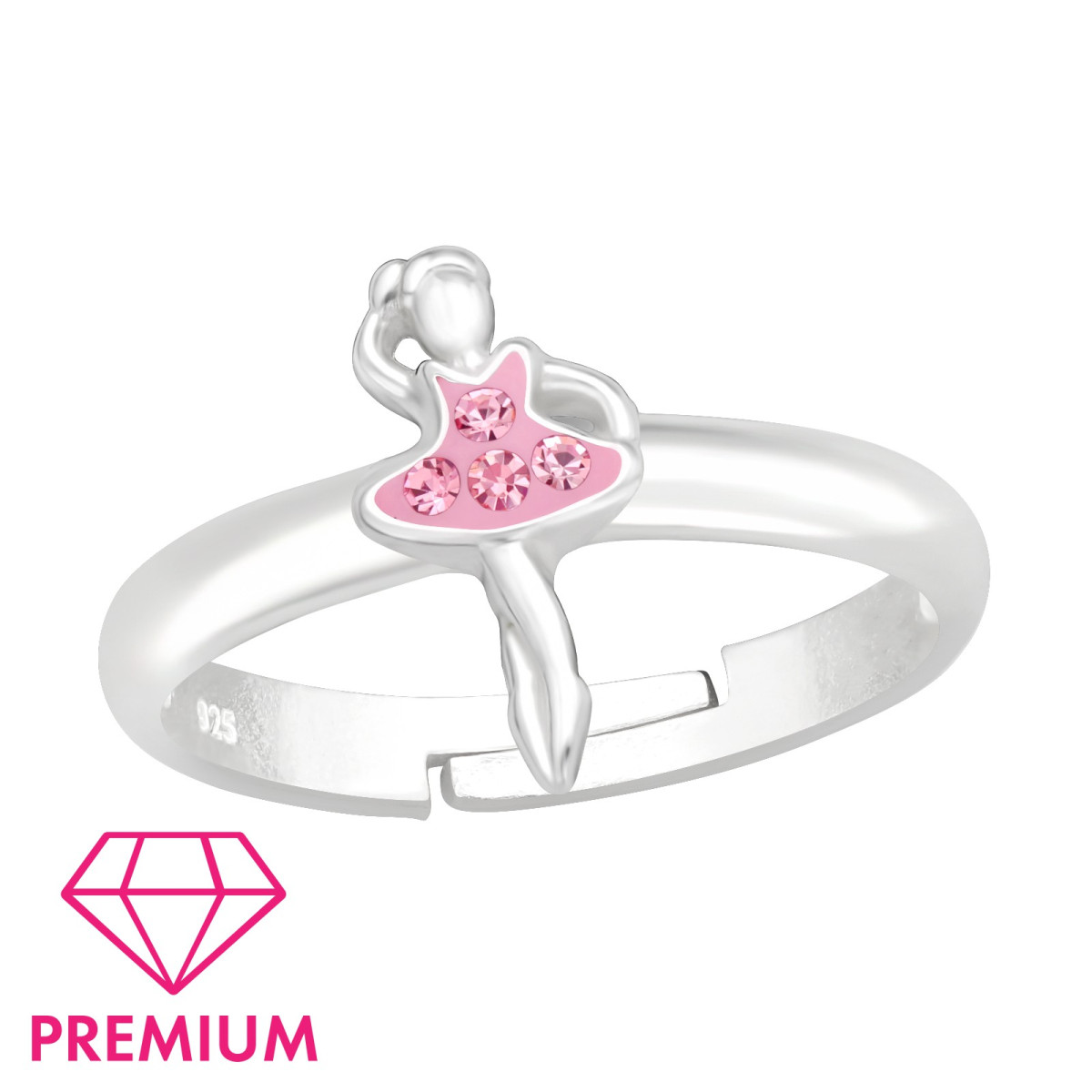 Balerinás gyermek ezüst gyűrű, állítható, kristály köves