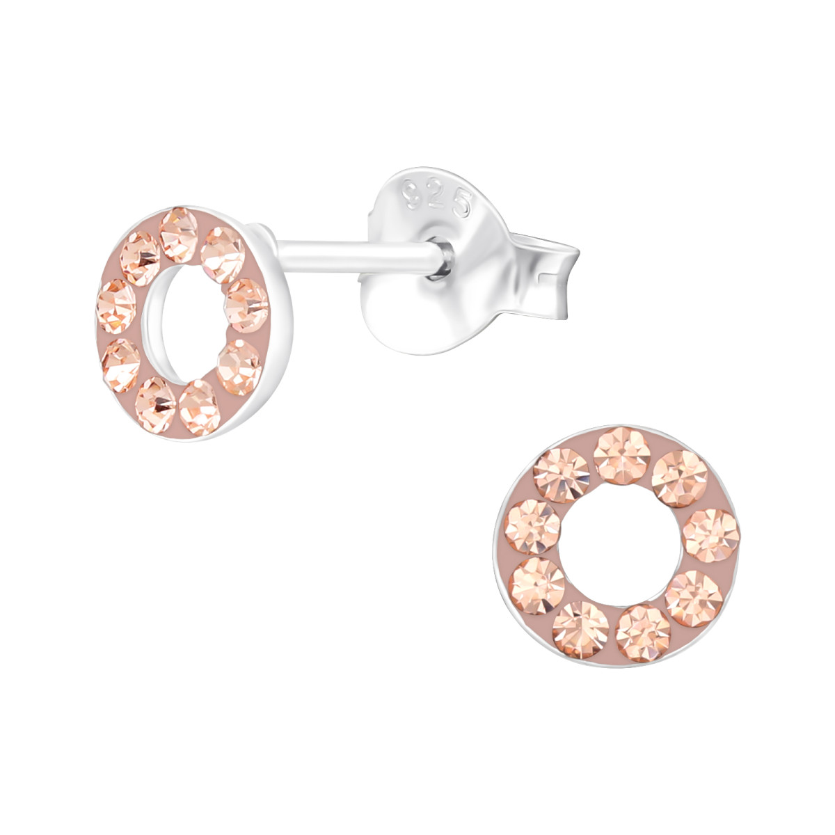 Barack színű kerek gyermek ezüst kristály fülbevaló, 1 pár