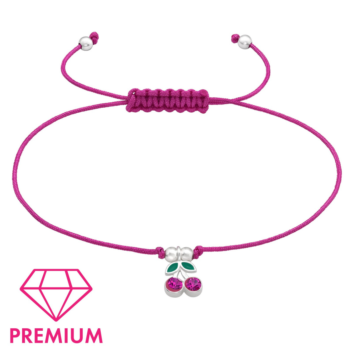 Cseresznye bordó állítható zsinóros prémium 925 ezüst gyerek karkötő , epoxy, sötétzöld, kristály köves