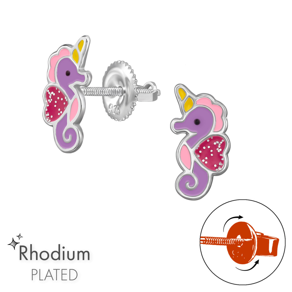 Csikkóhal gyerek csavaros fülbevaló 925 ezüst - 1 pár, epoxy, fekete, piros csillogás, lila, rózsaszín, sárga