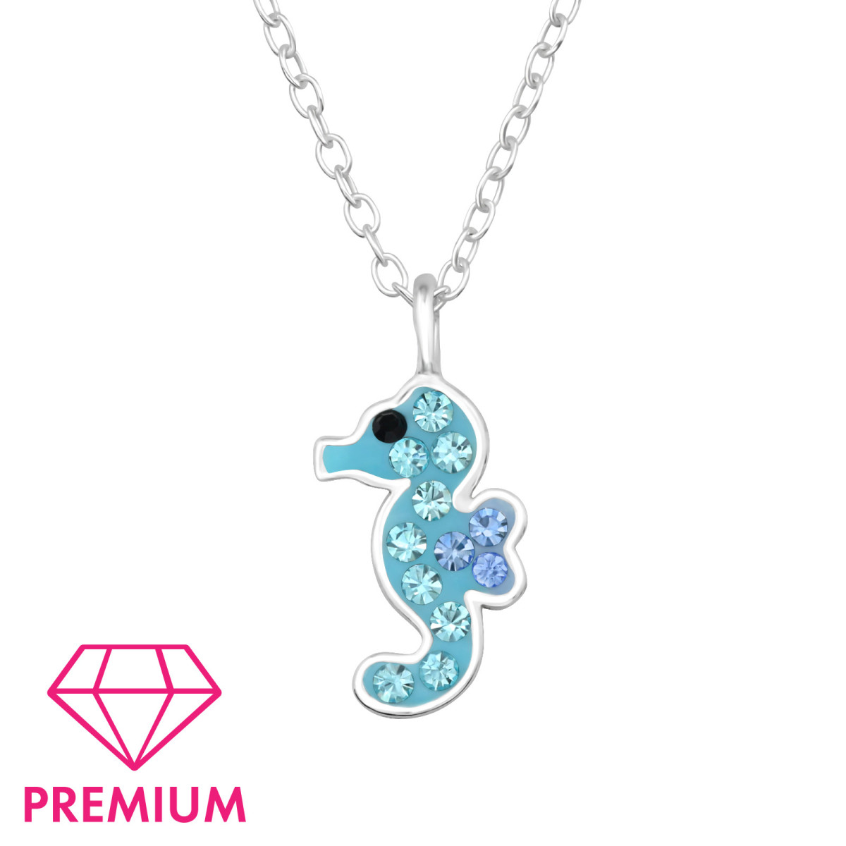 Csikóhal prémium 925 ezüst gyerek nyaklánc , kristály köves
