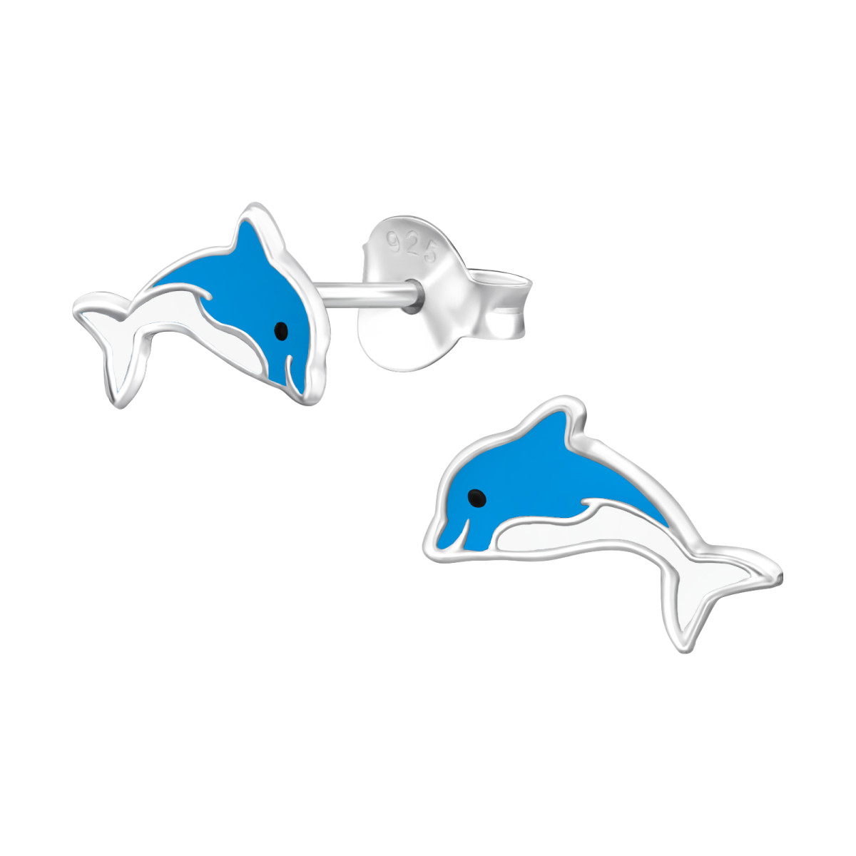 Delfin stift ezüst gyerek fülbevaló nyaralás, napfény, tenger , epoxy, fekete, fehér, kék