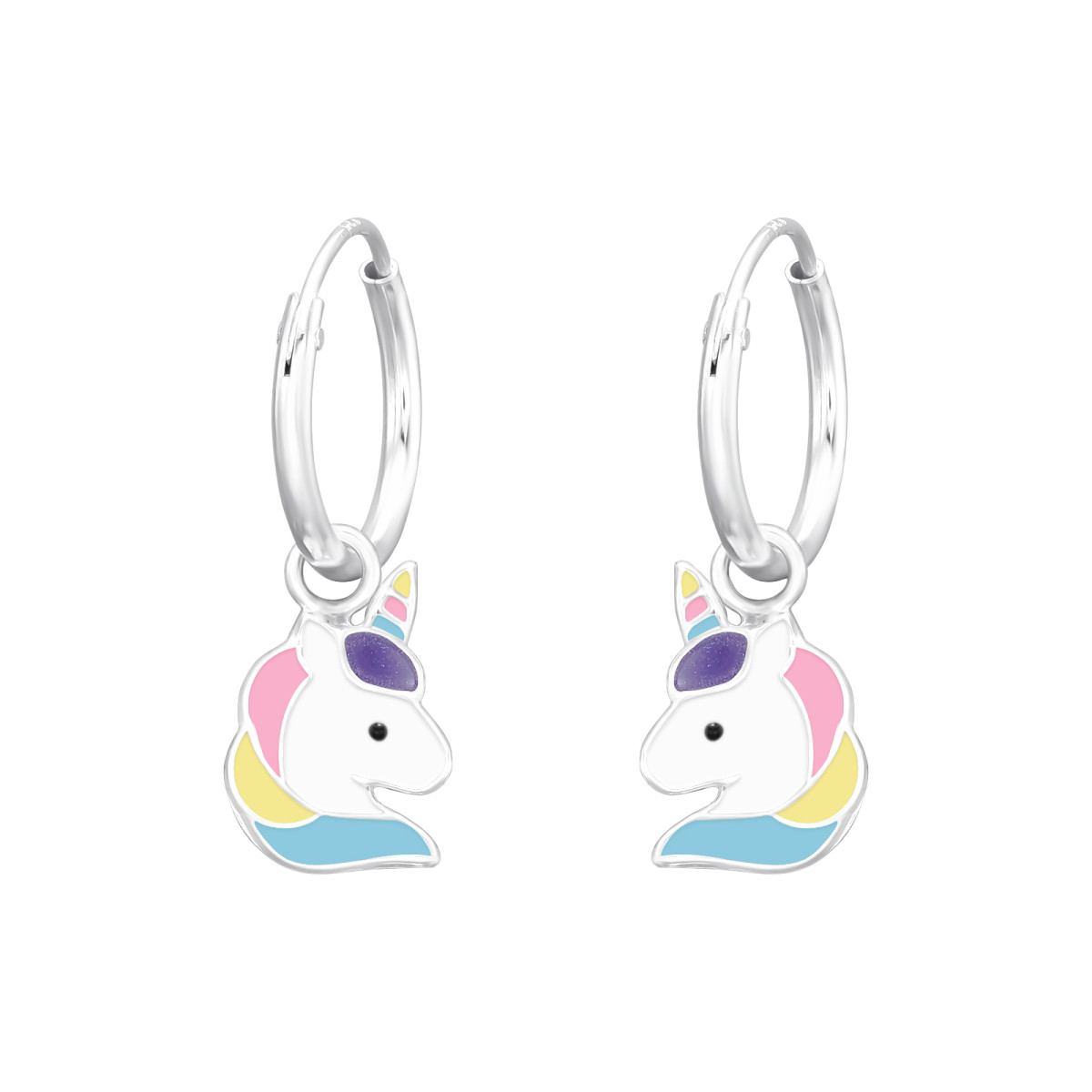 Egyszarvús gyermek ezüst karika fülbevaló, 1 pár, epoxy, fehér, fekete, világos lila, rózsaszín, sárga, világoskék