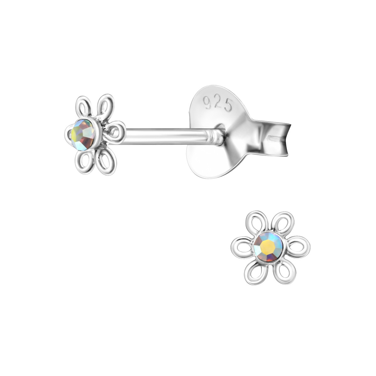Mini virág gyermek ezüst kristály fülbevaló, 1 pár