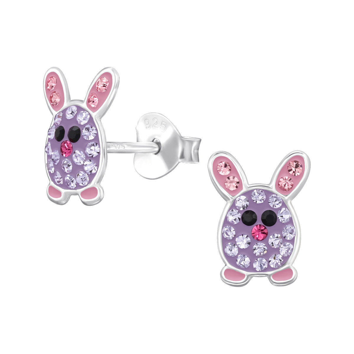 Nyúl gyermek bedugós fülbevaló 925 ezüst - 1 pár, epoxy, rózsaszín, kristály köves