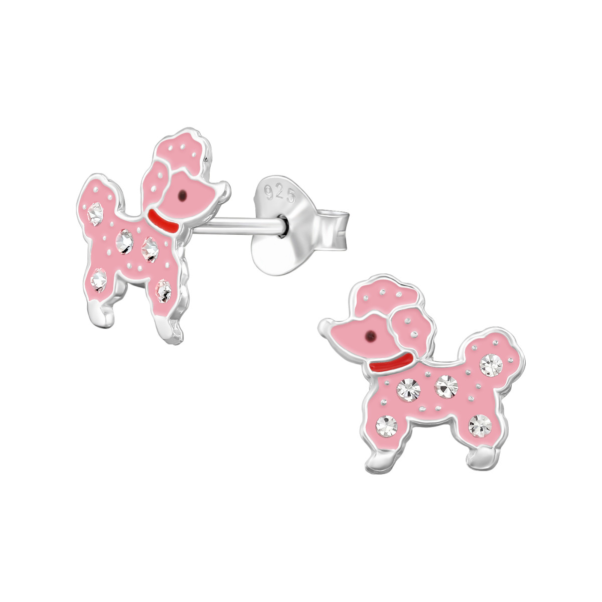 TAG-ek: Pudli, Kutya, gyermek, bedugós, fülbevaló, 95, ezüst, epoxy, fekete, piros, rózsaszín, kristály, köves