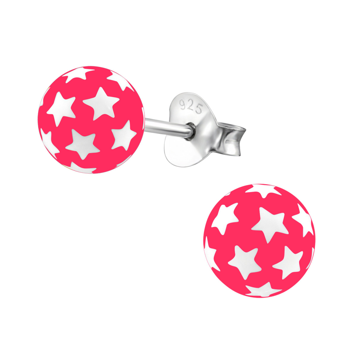 Gömb csillagos színes stift gyermek fülbevaló, 925 ezüst, 1 pár