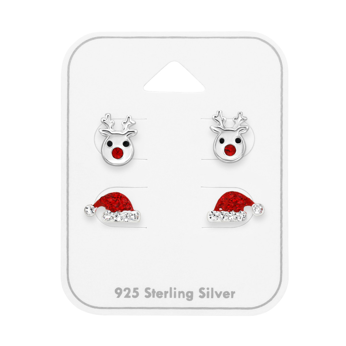 Karácsonyi gyerek ékszer szett, 925 ezüst - 2 pár fülbevaló, epoxy, fekete, kristály köves