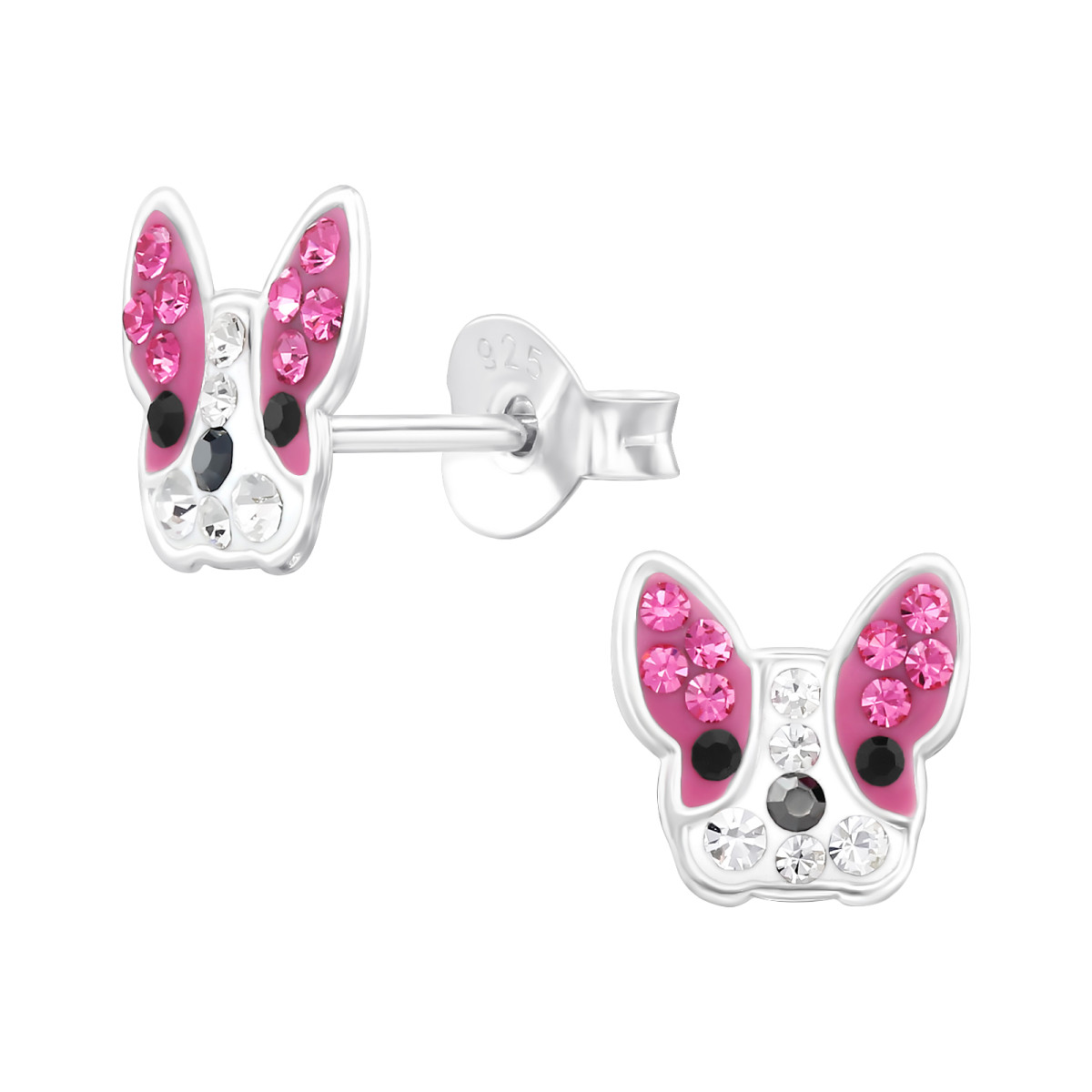TAG-ek: Kutya, bulldog, fejes, kristály, stift, ezüst, gyermekfülbevaló,