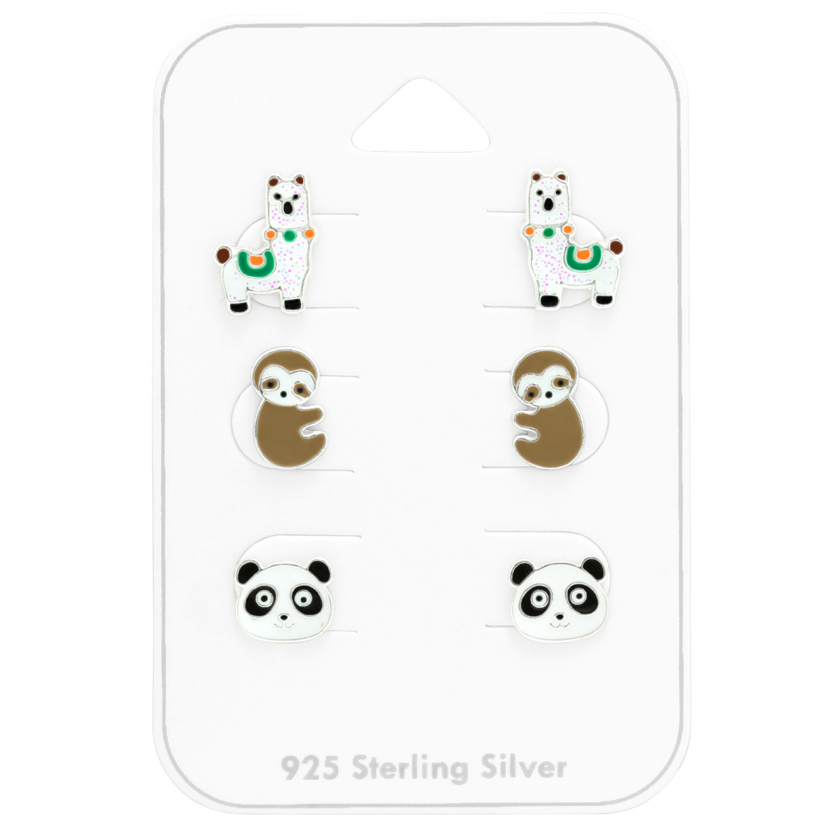 Láma lajhár panda gyermek ékszer szett, 925 ezüst, epoxy, narancs, fekete, zöld, fehér csillogó, sötétbarna, , barna