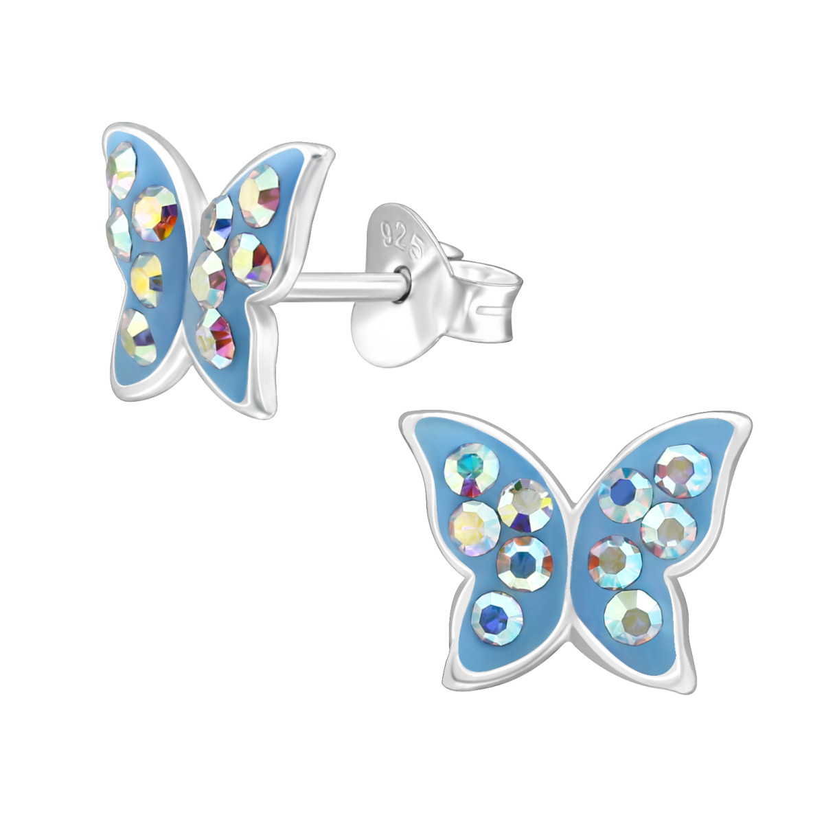 Lepke kék kristállyal gyermek bedugós fülbevaló 925 ezüst - 1 pár, kristály köves