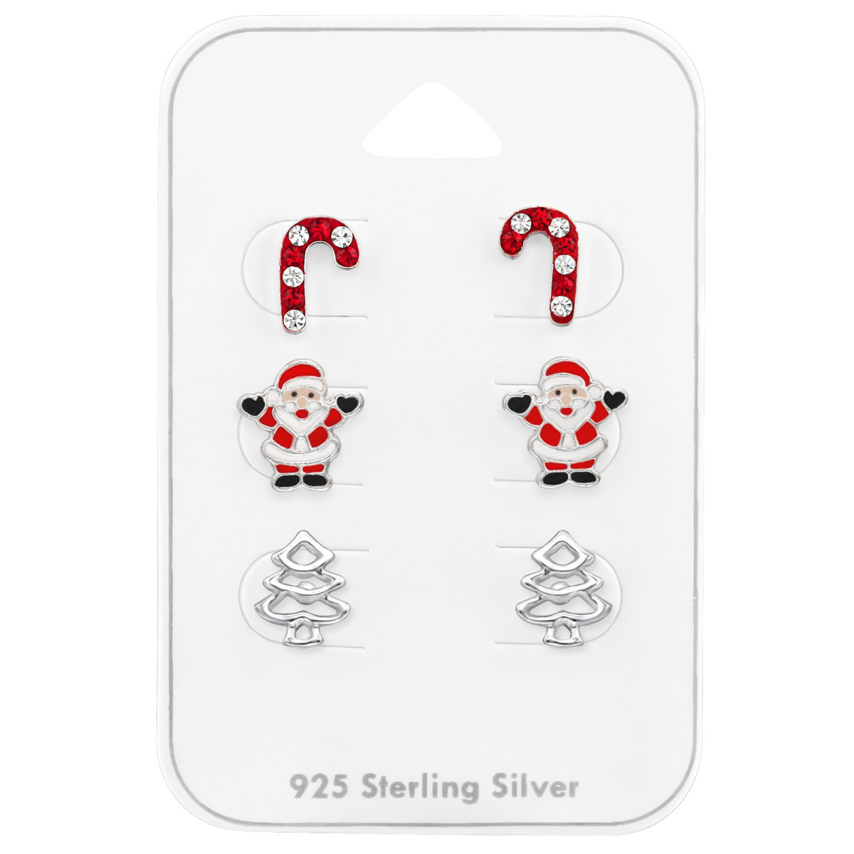 Nyalóka télapó fenyőfa gyermek ékszer szett, 925 ezüst, epoxy, fekete, fehér, piros, kristály köves