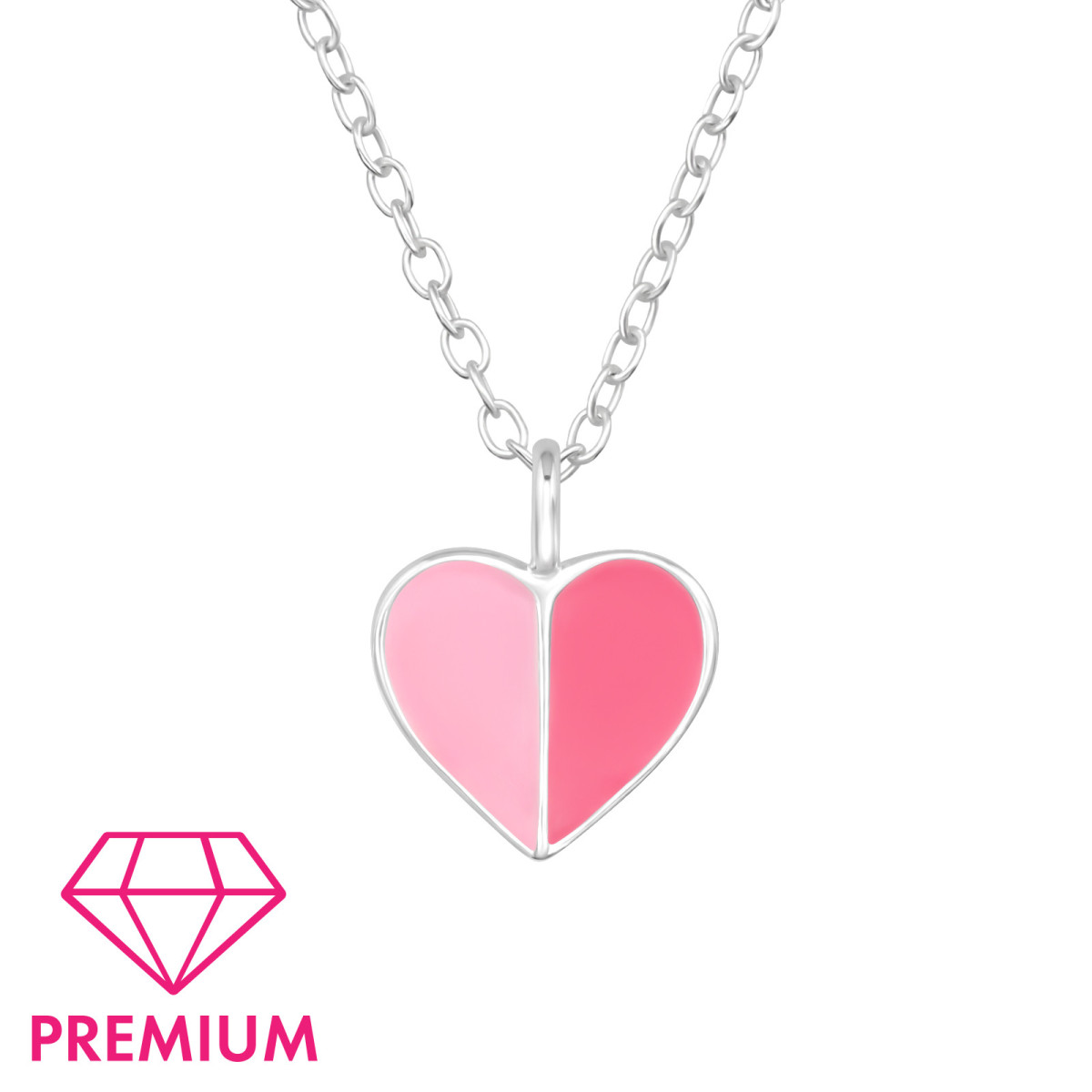 Pink rózsaszín szív prémium 925 ezüst gyerek nyaklánc , epoxy, világos rózsaszín,