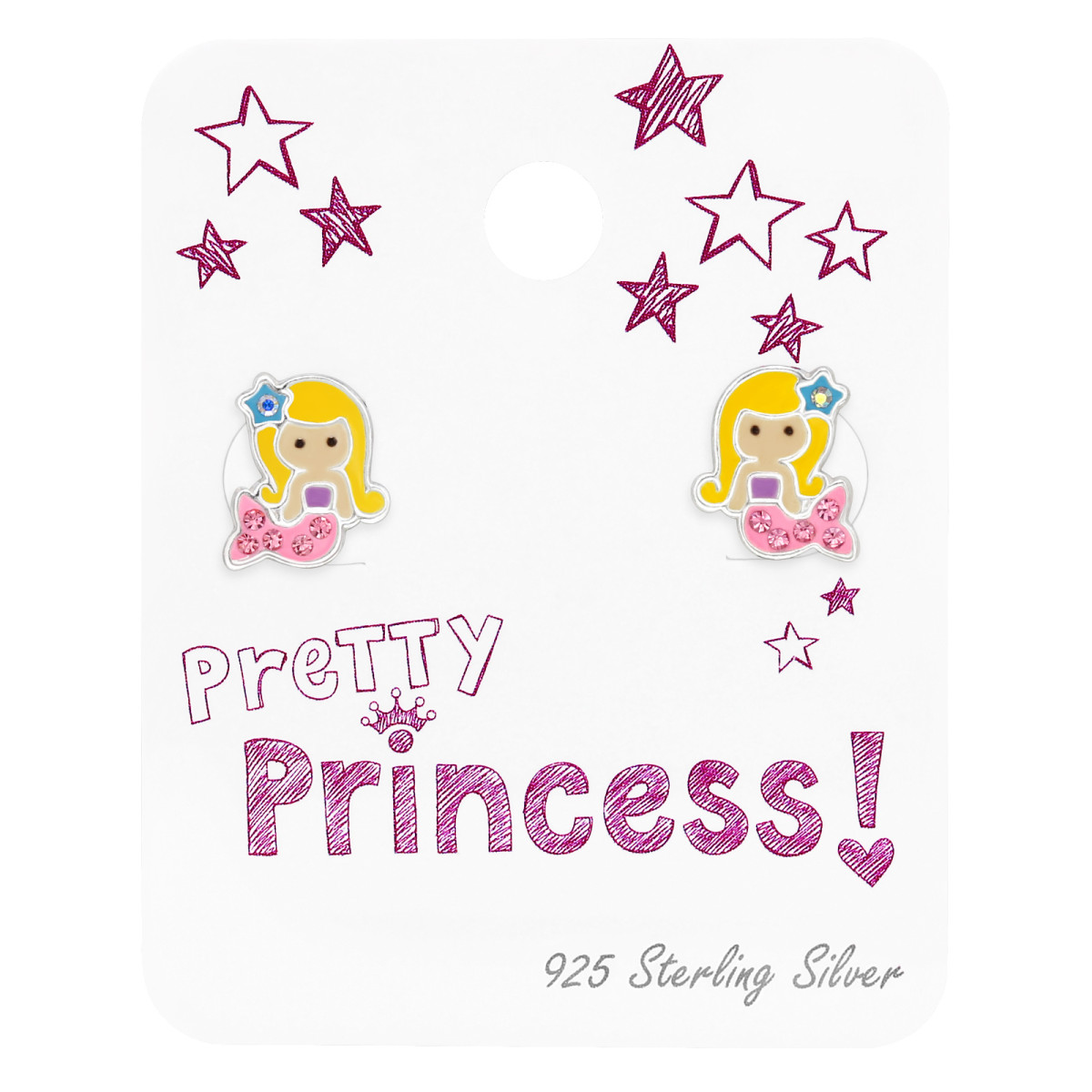Sellő gyermek bedugós fülbevaló kártyán 925 ezüst - 1 pár, epoxy, lila, fekete, rózsaszín, világos barna, sárga, világoskék, kristály köves