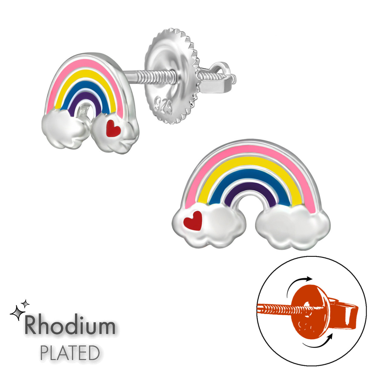 Szivárvány gyerek csavaros fülbevaló 925 ezüst - 1 pár, epoxy, kék, sárga, piros, lila, lt.pink