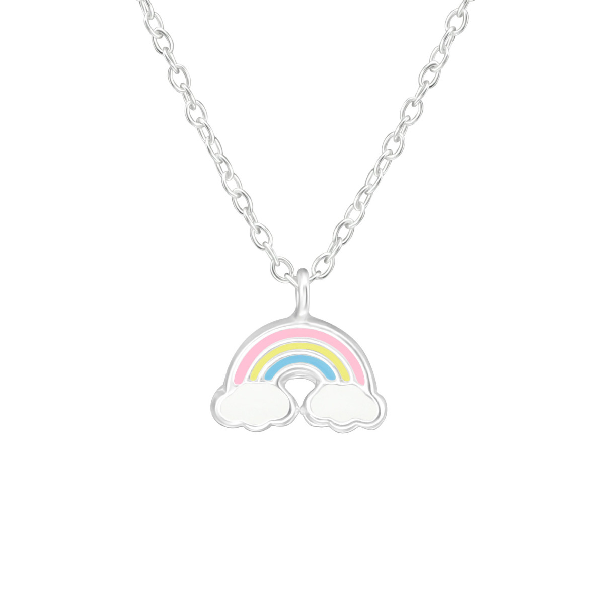 Szivárványos pasztell ezüst gyermek nyaklánc medállal, epoxy, világoskék, fehér, halványsárga, világos rózsaszín