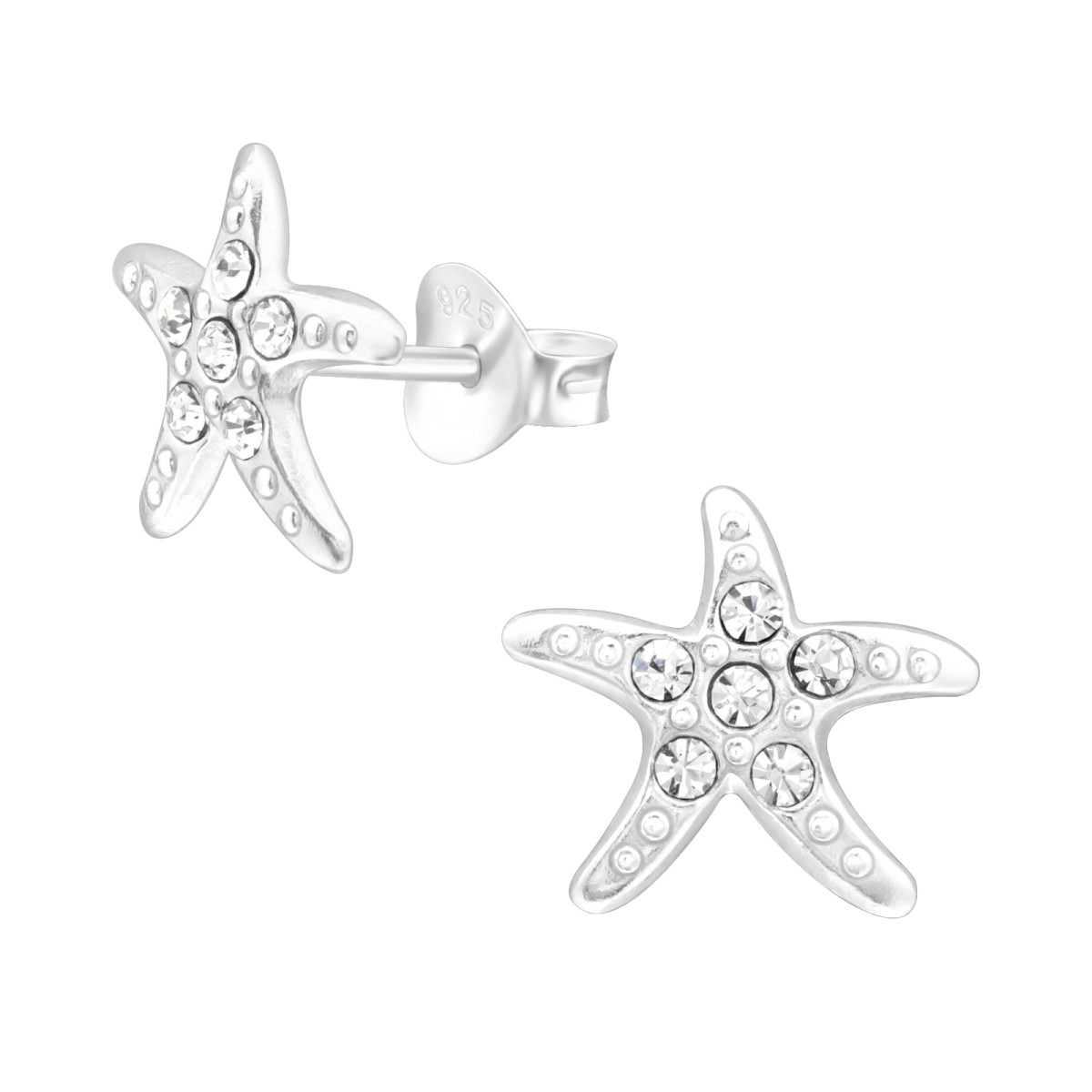Tengeri csillagos gyermek ezüst kristály fülbevaló, 1 pár